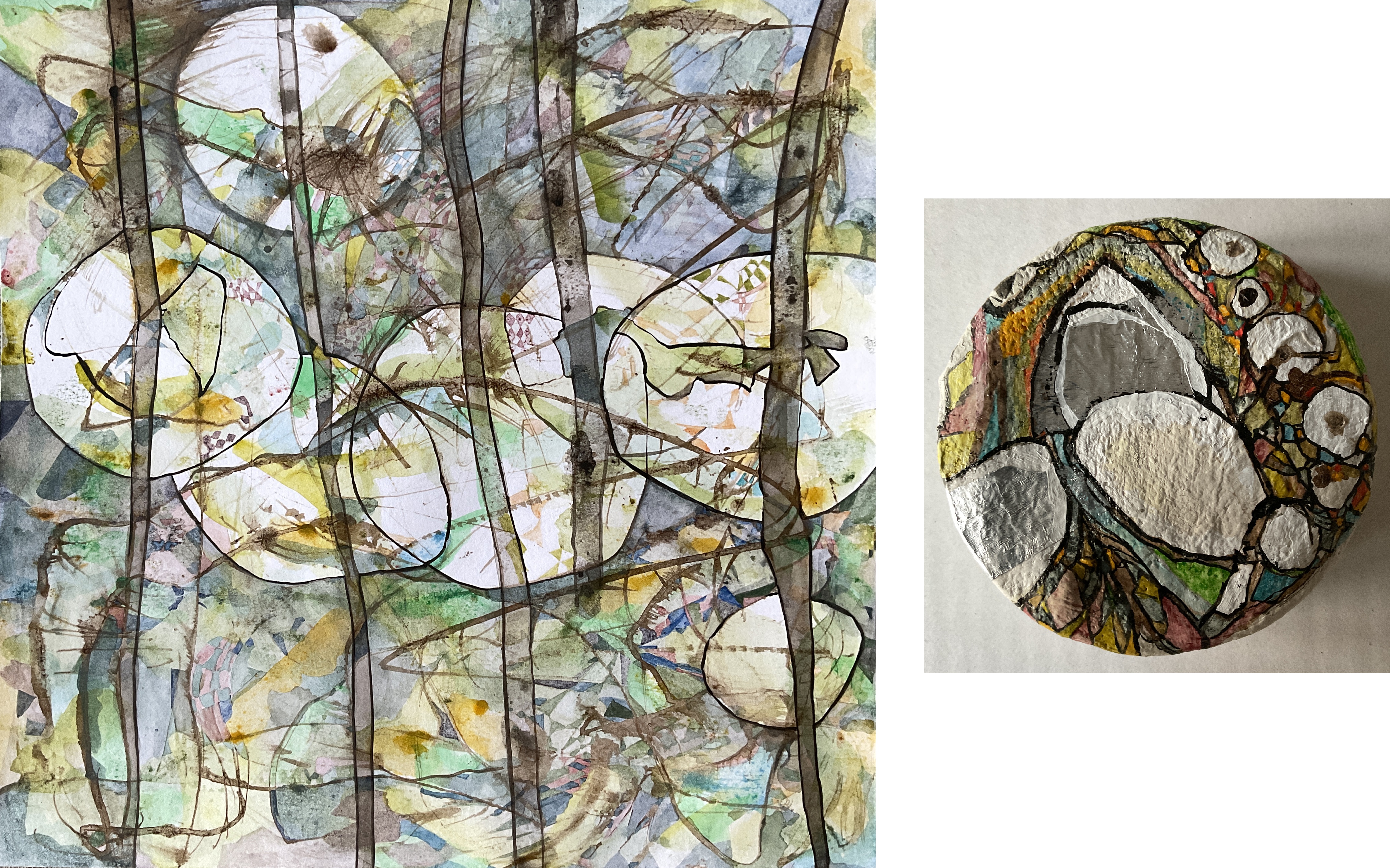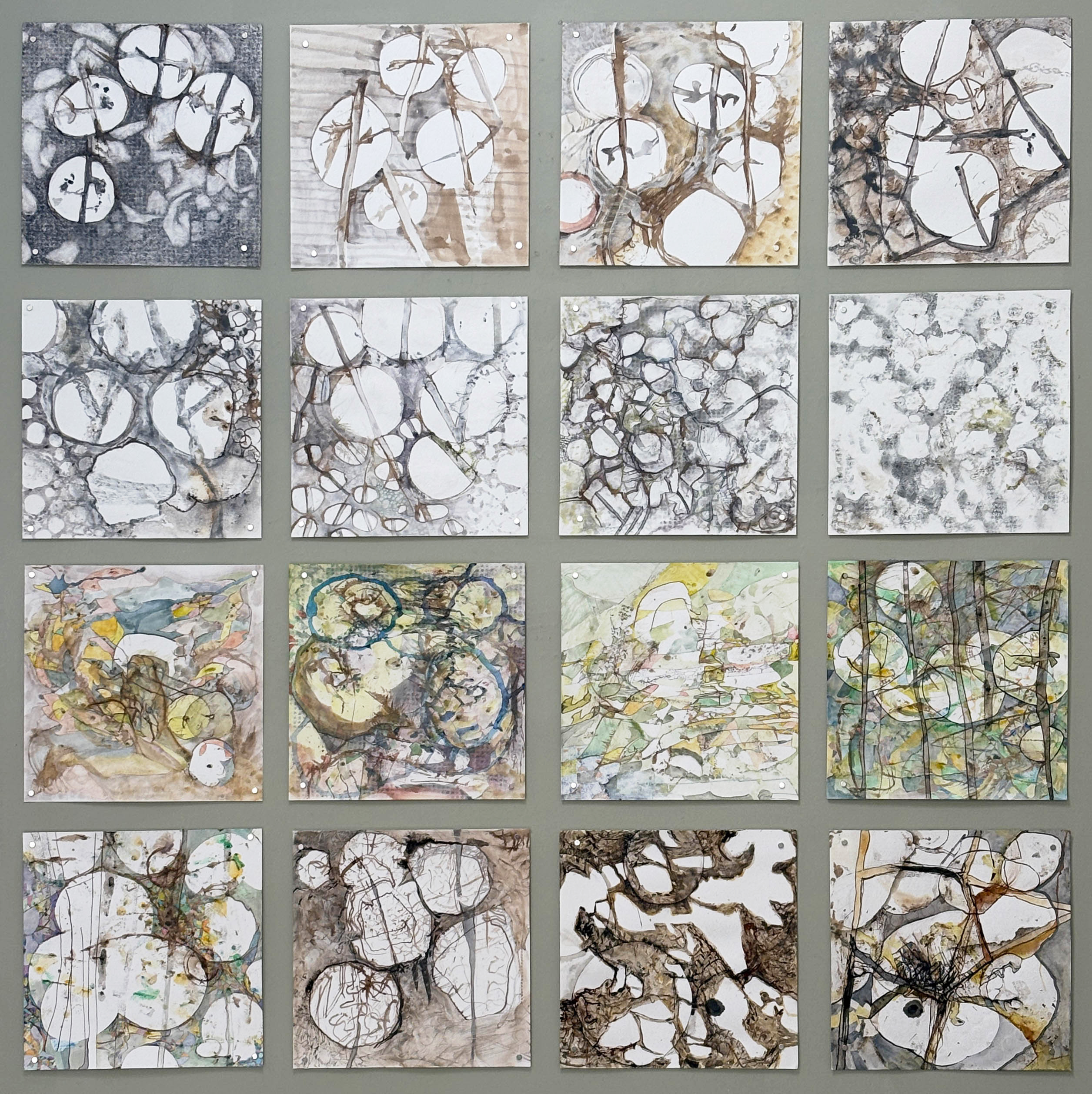 ink, watercolour, graphite, paper; 25 x 25 cm