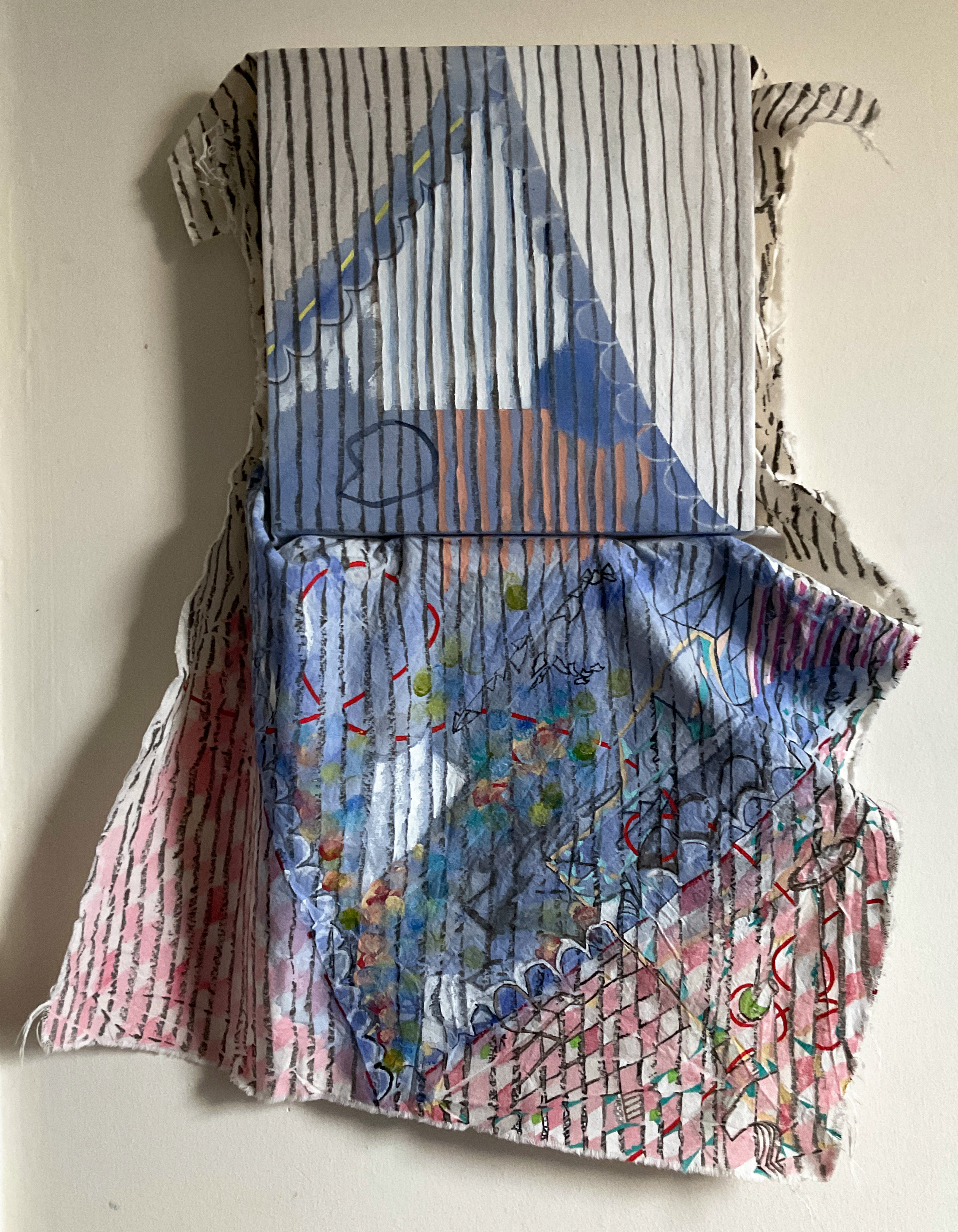 watercolour, gouache, acrylic and fabric on canvas; 41x 31 cm