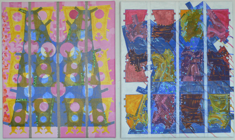 graphite, ink, watercolour, gouache, acrylic and enamel on wood